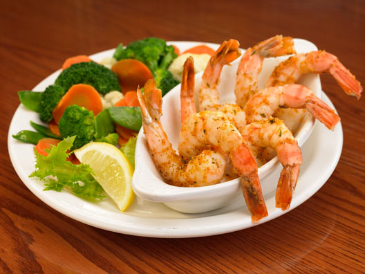 Sam’s Jumbo Shrimp Scampi - Seasoned and broiled in garlic lemon butter, served on a bed of seaoned rice